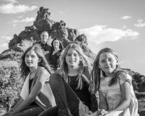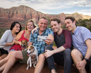Unlike wedding photographers who come to Sedona from elsewhere, I’ve lived in Sedona for over 35 years and know the area intimately. I’ve photographed weddings in all of Sedona’s main venues — resorts, churches, chapels, centers, hotels, bed and breakfasts, private homes, and most of all, the breathtaking national forest that surrounds Sedona. My favorite locations are outside on or near the beautiful red rocks of Sedona. When I’m not shooting or editing photos, that’s usually where you can find me: climbing rocks, hiking trails, and enjoying the healing waters of Oak Creek (I’m the guy on the far right, out hiking with some friends).